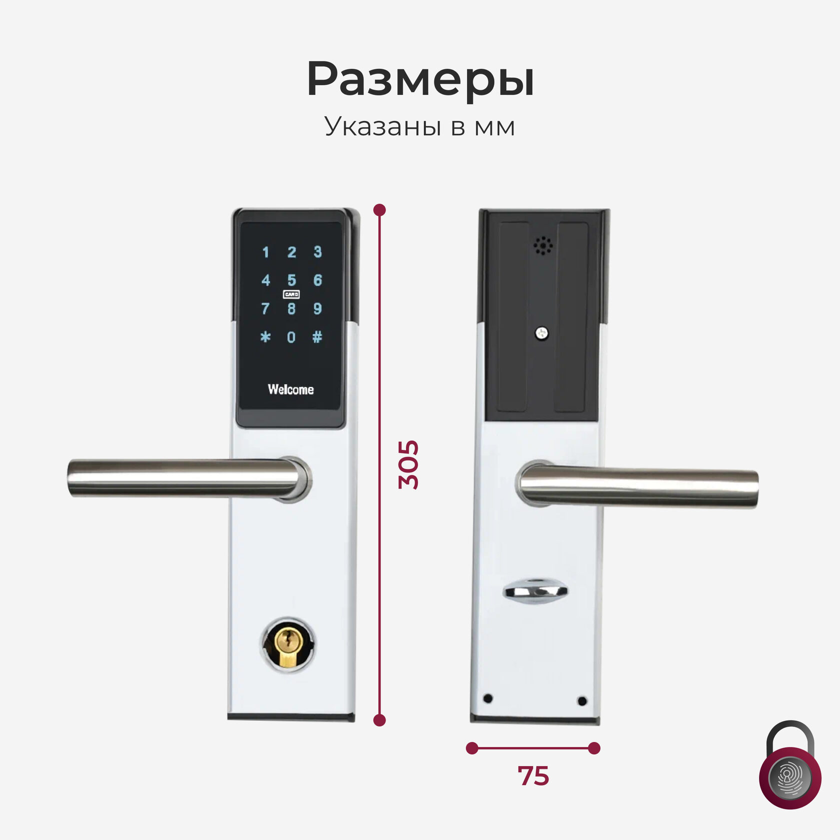 Электронный замок Fantom Hotel открывается цифровым паролем, картой-брелоком, с телефона через приложение по Bluetooth и по Wi-Fi (дополнительно необходим шлюз), механическим ключом. Также есть встроенный сканер отпечатка пальца, вынесенный на цифровую панель для предотвращения ошибочного нажатия. Гостиничный электронный замок классического дизайна на межкомнатные деревянные или металлические двери.