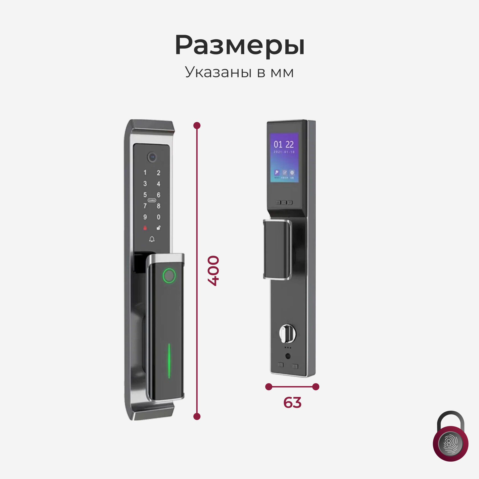 Функции: открытие через приложение/удаление (изменение) паролей/просмотр записей входа/регистрация карт/получение PUSH уведомлений и удаленная установка кода (дополнительно необходим WiFi шлюз)/видеокамера/ автоматическая работа