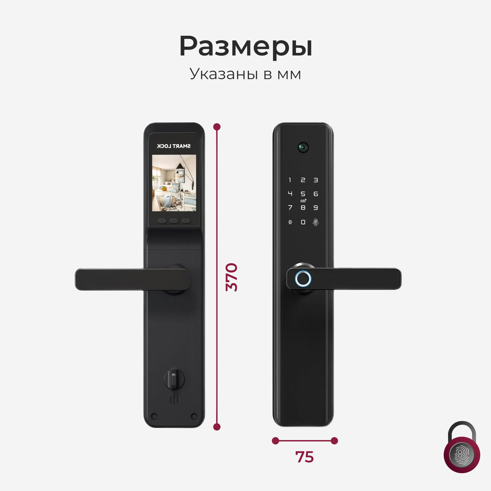 Умный дверной замок Fantom X1-PRO Black открывается по отпечатку пальца, цифровым паролем, картой-брелоком, удалённо через встроенный wi-fi, механическим ключом, а также оснащен видеокамерой и ярким дисплеем. Устанавливается на входные двери с возможностью дистанционного управления и контроля доступа в помещение. Установка замка возможна как на деревянные, так и металлические двери толщиной до 120 мм.